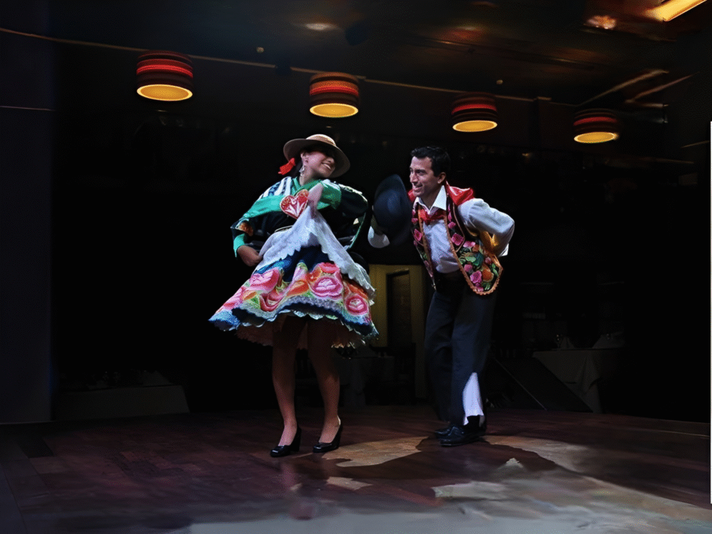 Disfrutarte de un variado buffet con los deliciosos sabores de la cocina peruana. Contempla las fascinantes danzas de las distintas regiones del Perú.