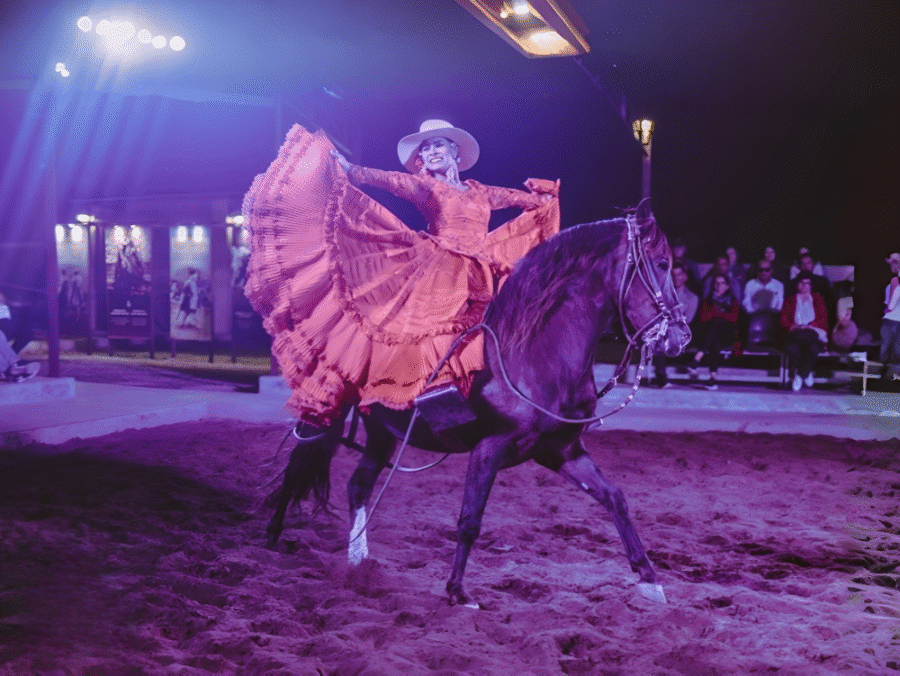 El principal atractivo es el impresionante show de los elegantes caballos de paso peruano, cuyo andar suave y distinguido será acompañado por danzas típicas. En este vibrante espectáculo, los jinetes y los caballos ejecutan una coreografía que destaca la tradición y elegancia de este ícono cultural. Además, podrás disfrutar de la impactante representación de los bailes peruanos, un espectáculo cargado de energía, que te transportará a lo más profundo de las tradiciones festivas y folclóricas del Perú.